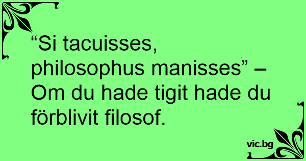 “Si tacuisses, philosophus manisses” – Om du hade tigit hade du förblivit filosof.