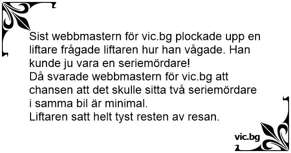Då svarade webbmastern för vic.bg att chansen att det skulle sitta två seriemördare i samma bil är minimal.