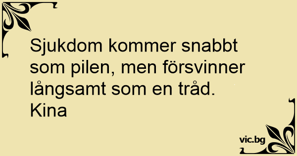 Sjukdom kommer snabbt som pilen, men försvinner långsamt som en tråd.