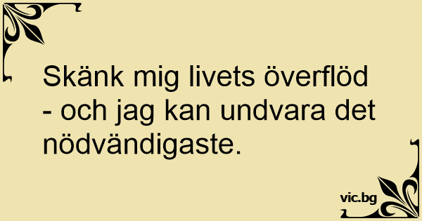 Skänk mig livets överflöd - och jag kan undvara det nödvändigaste.