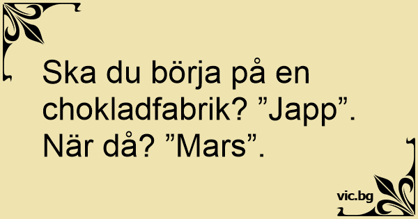 Ska du börja på en chokladfabrik? ”Japp”. När då? ”Mars”.