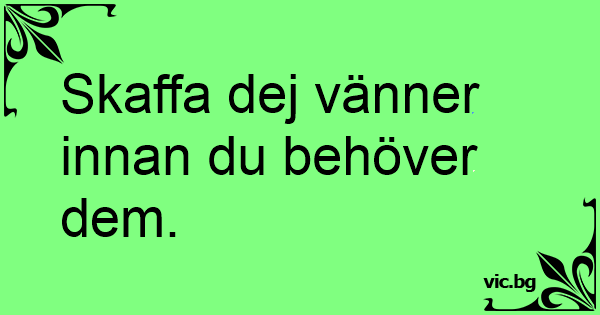 Skaffa dej vänner innan du behöver dem.