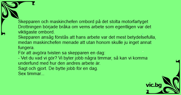 Skepparen och maskinchefen ombord på det stolta motorfartyget Drottningen började bråka om vems arbete som egentligen var det viktigaste ombord.