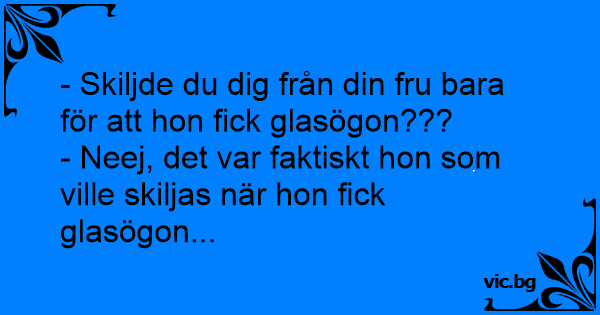 - Skiljde du dig från din fru bara för att hon fiск glasögon???