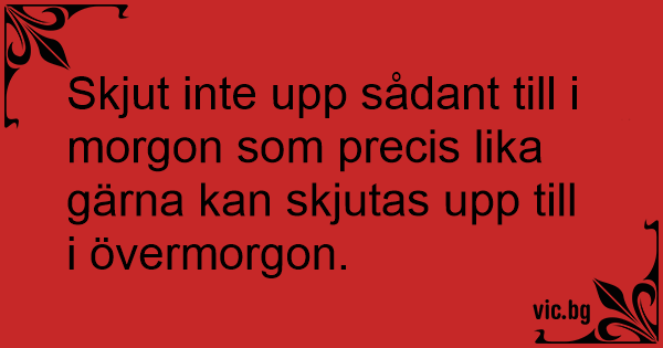 Skjut inte upp sådant till i morgon som precis lika gärna kan skjutas upp till i övermorgon.