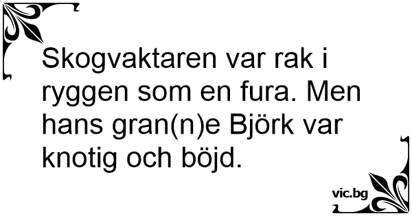 Skogvaktaren var rak i ryggen som en fura. Men hans gran(n)e Björk var knotig och böjd.