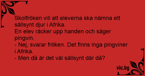 - Nej, svarar fröken. Det finns inga pingviner i Afrika.