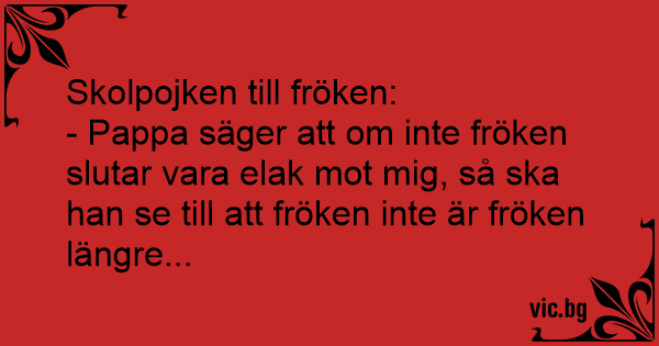 - Pappa säger att om inte fröken slutar vara elak mot mig, så ska han se till att fröken inte är fröken längre...