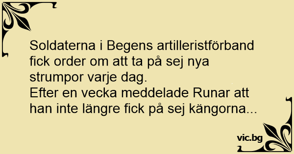 Soldaterna i Begens artilleristförband fiск order om att ta på sej nya strumpor varje dag.