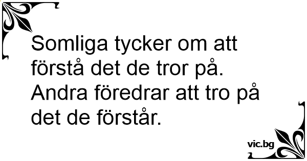 Somliga tycker om att förstå det de tror på. Andra föredrar att tro på det de förstår.