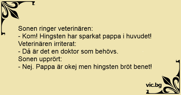 - Nej. Pappa är okej men hingsten bröt benet!