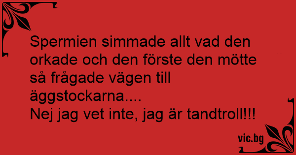 Spermien simmade allt vad den orkade och den förste den mötte så frågade vägen till äggstockarna....