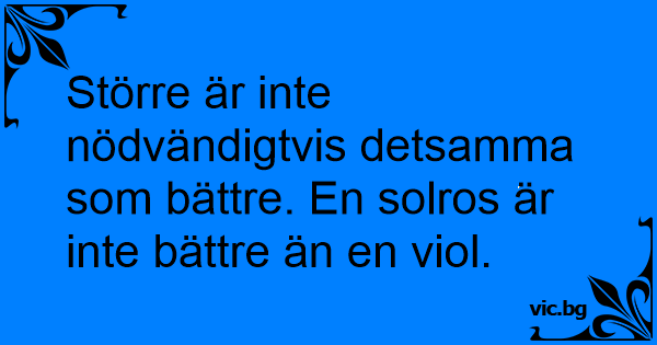 Större är inte nödvändigtvis detsamma som bättre. En solros är inte bättre än en viol.