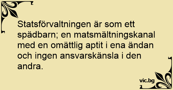 Statsförvaltningen är som ett spädbarn; en matsmältningskanal med en omättlig aptit i ena ändan och ingen ansvarskänsla i den andra.