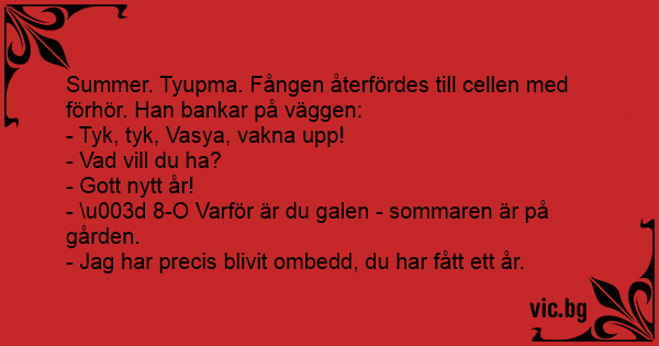 Summer. Tyupma. Fången återfördes till cellen med förhör. Han bankar på väggen: