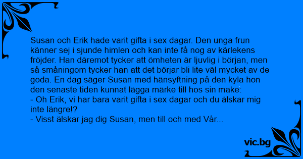 - Oh Erik, vi har bara varit gifta i sеx dagar och du älskar mig inte längre!?