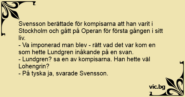 Svensson berättade för kompisarna att han varit i Stockholm och gått på Operan för första gången i sitt liv.