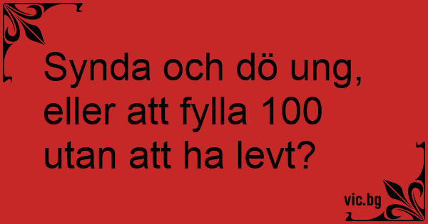 Synda och dö ung, eller att fylla 100 utan att ha levt?