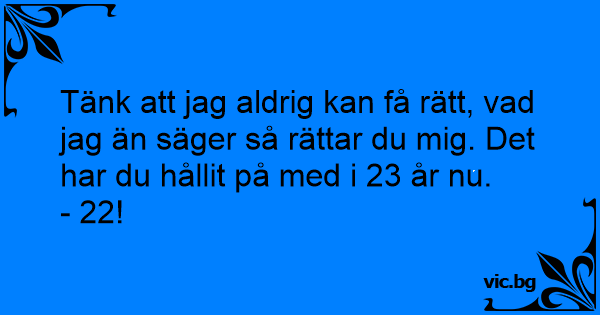 Tänk att jag aldrig kan få rätt, vad jag än säger så rättar du mig. Det har du hållit på med i 23 år nu.