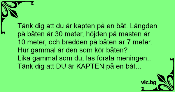 Tänk dig att du är kapten på en båt. Längden på båten är 30 meter, höjden på masten är 10 meter, och bredden på båten är 7 meter.
