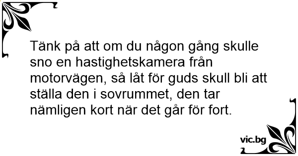 Tänk på att om du någon gång skulle sno en hastighetskamera från motorvägen, så låt för guds skull bli att ställa den i sovrummet, den tar nämligen kort när det går för fort.