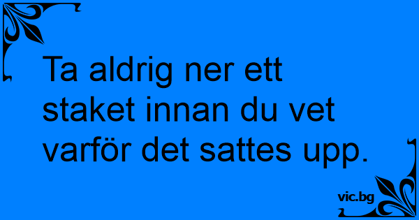 Ta aldrig ner ett staket innan du vet varför det sattes upp.