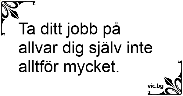 Ta ditt jobb på allvar dig själv inte alltför mycket.