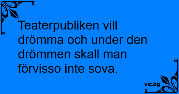 Teaterpubliken vill drömma och under den drömmen skall man förvisso inte sova.