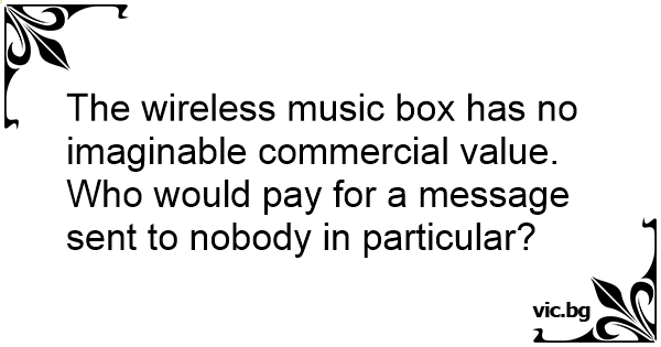 The wireless music box has no imaginable commercial value. Who would pay for a message sent to nobody in particular?