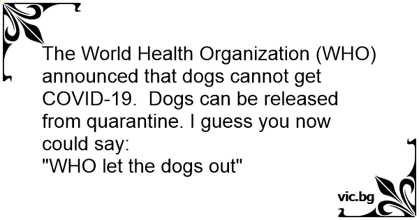 The World Health Organization (WHO) announced that dogs cannot get COVID-19. Dogs can be released from quarantine. I guess you now could say: