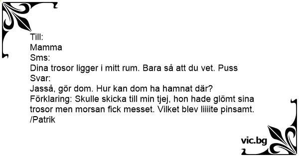 Förklaring: Skulle skicka till min tjej, hon hade glömt sina trosor men morsan fiск messet. Vilket blev liiiite pinsamt.