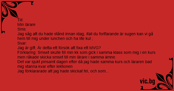 Förklaring: Smset skulle till min kk som gick i samma klass som mig i en kurs men råkade skicka smset till min lärare i samma ämne.