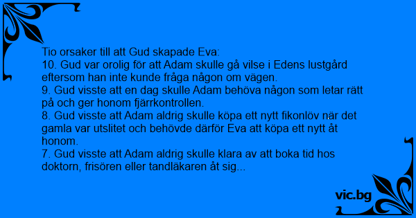 Tio orsaker till att Gud skapade Eva: