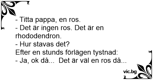 - Виж татко, роза. - Не е роза. Това е рододендрон. - Как може да го кажеш буква по буква? След момент на смутено мълчание: - Всъщност това е роза ...