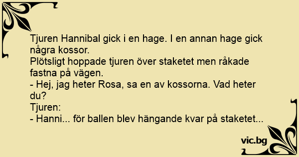 Tjuren Hannibal gick i en hage. I en annan hage gick några kossor.