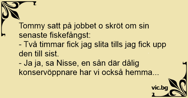 Tommy satt på jobbet o skröt om sin senaste fiskefångst: