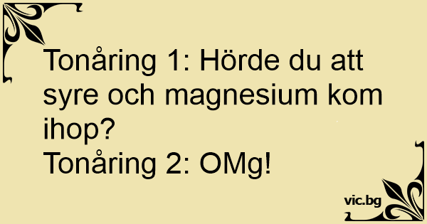 Български English Deutsch Español Русский Français Italiano Ελληνικά Македонски Türkçe Українська Português Polski Tonåring 1: Hörde du att syre och magnesium kom ihop? Tonåring 2: OMg! Nederlands Dansk Norsk Suomi Magyar Româna Čeština Lietuvių Latviešu Hrvatski