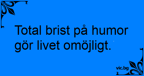 Total brist på humor gör livet omöjligt.