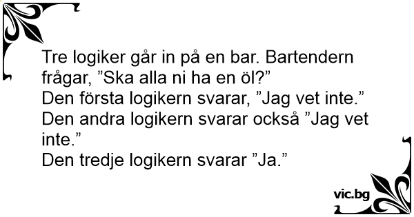 Tre logiker går in på en bar. Bartendern frågar, ”Ska alla ni ha en öl?”