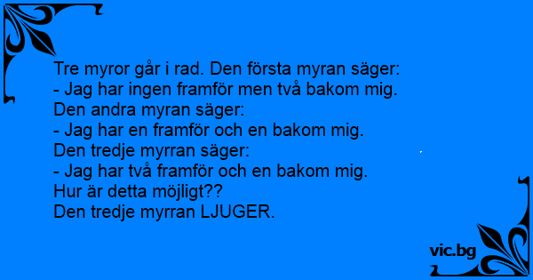 Tre myror går i rad. Den första myran säger: