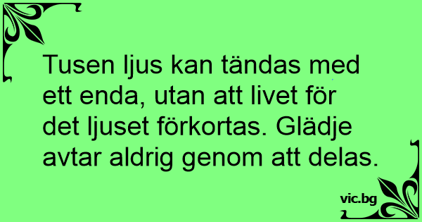 Tusen ljus kan tändas med ett enda, utan att livet för det ljuset förkortas. Glädje avtar aldrig genom att delas.