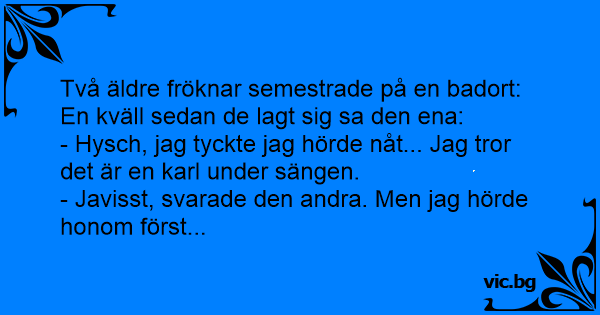 - Hysch, jag tyckte jag hörde nåt... Jag tror det är en karl under sängen.