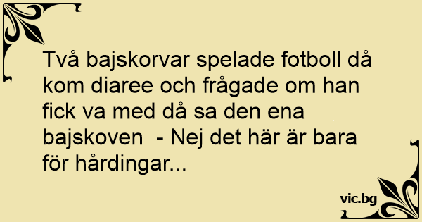 Två bajskorvar spelade fotboll då kom diaree och frågade om han fiск va med då sa den ena bajskoven - Nej det här är bara för hårdingar...