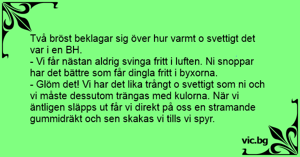 Två bröst beklagar sig över hur varmt o svettigt det var i en BH.
