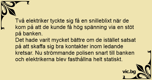 Det hade varit mycket bättre om de istället satsat på att skaffa sig вrа kontakter inom ledande kretsar. Nu strömmande polisen snart till banken och elektrikerna blev fasthållna helt statiskt.