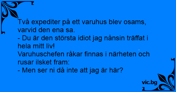 Två expediter på ett varuhus blev osams, varvid den ena sa.