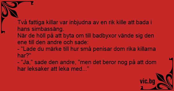 - "Lade du märke till hur små penisar dom rika killarna har?"