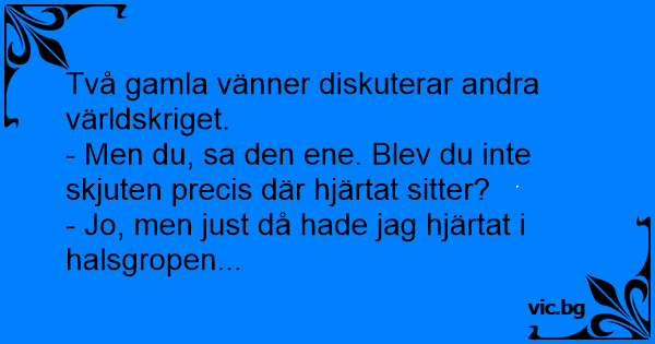 - Men du, sa den ene. Blev du inte skjuten precis där hjärtat sitter?