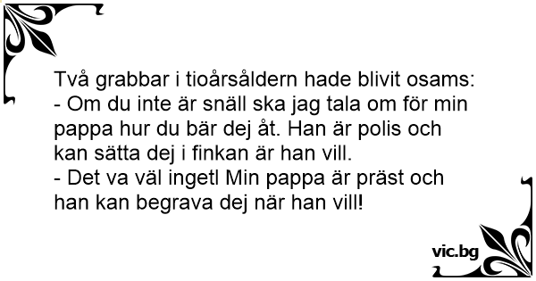 - Det va väl ingetl Min pappa är präst och han kan begrava dej när han vill!