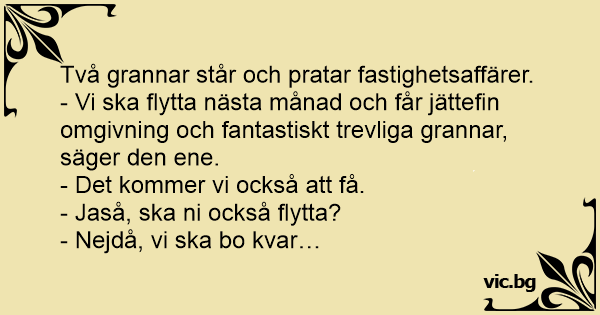 - Vi ska flytta nästa månad och får jättefin omgivning och fantastiskt trevliga grannar, säger den ene.
